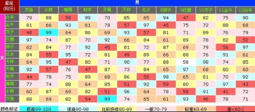 4、另外,对於喜新厌旧的您们而言,随时新鲜的热度是维系爱情的不二!星座表十二星座表匹配。白羊座VS金牛座配对评分:70分还满不错的一对星座比重:54:46十二星座的搭配指数是多少。